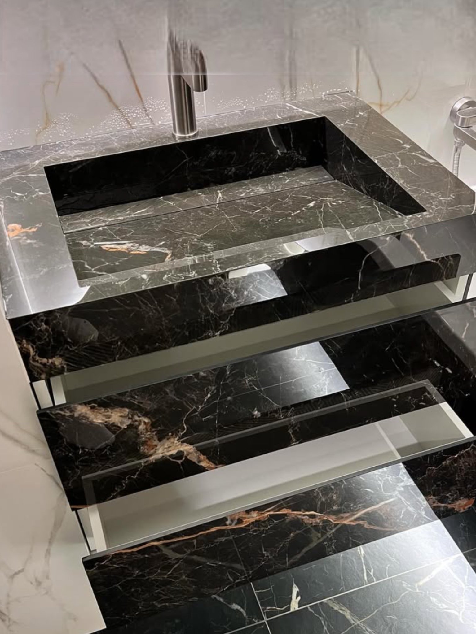 Combining your creativity with the beauty of porcelain tiles. Each piece embodies the care and attention that only quality workmanship can provide. With every detail from the perfectly mitred edges to the beautifully integrated surfaces, you can be confident that each element will be one of a kind, not only on the day they leave workshop, but for many years to come. Explore our exclusive range of tile colours, finishes, and styles. Once you’ve chosen your design, material, and size, we begin crafting your bespoke bathroom sink — tailored entirely to you.