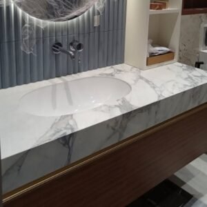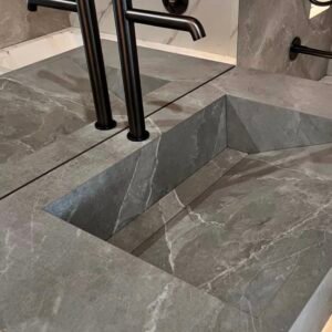 Our team specialises in bespoke creations and custom-made units tailored to your exact specifications. Each unit can be made in any size, colour, or finish, allowing you to design a truly one-of-a-kind centrepiece for your bathroom. Whether you prefer a porcelain vanity top with integrated sink or a porcelain double sink countertop, every piece is built to blend functionality with timeless elegance.
