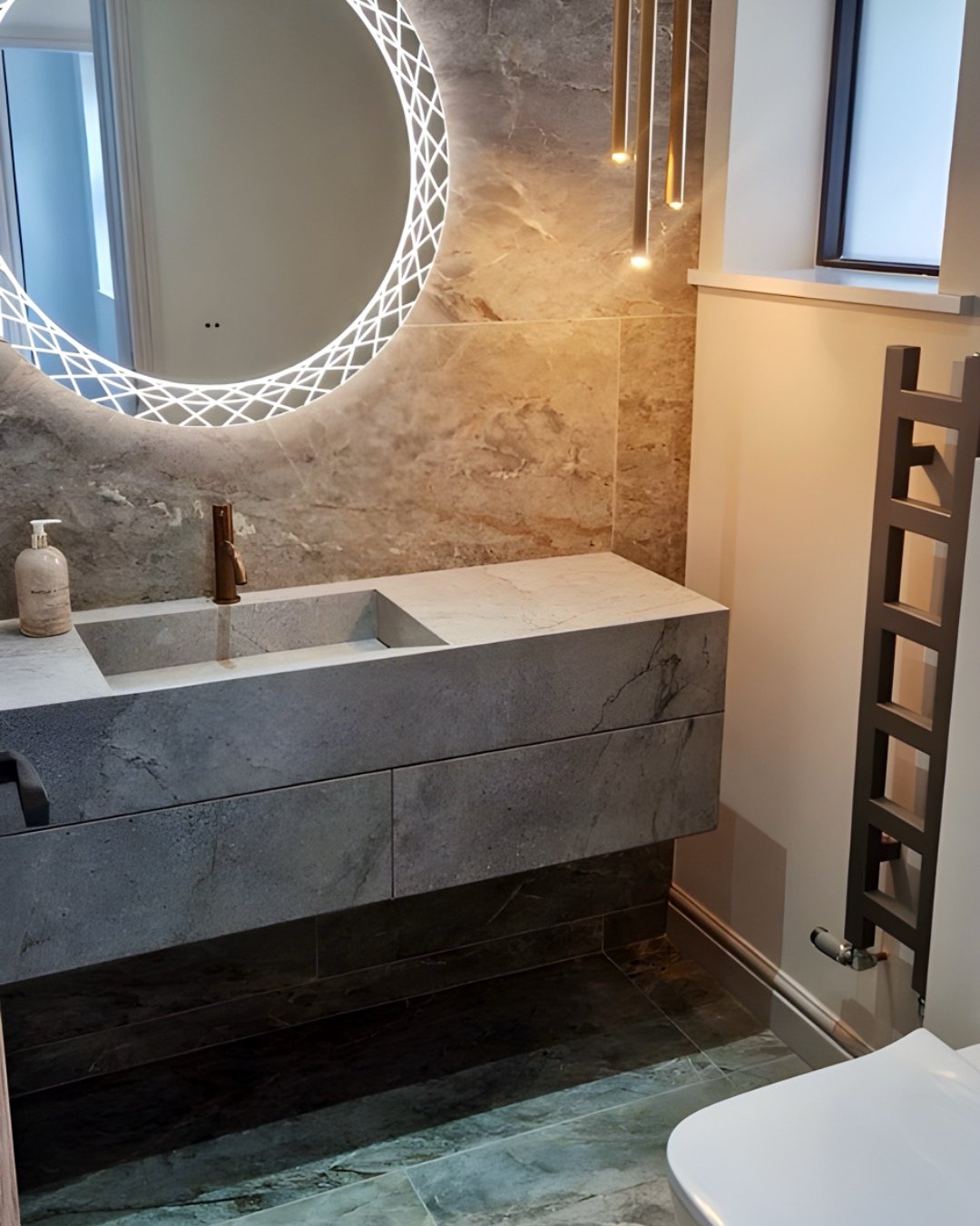 – Natural Veining: Each sink is crafted with unique colour tones and vein patterns, offering a truly one-of-a-kind design.